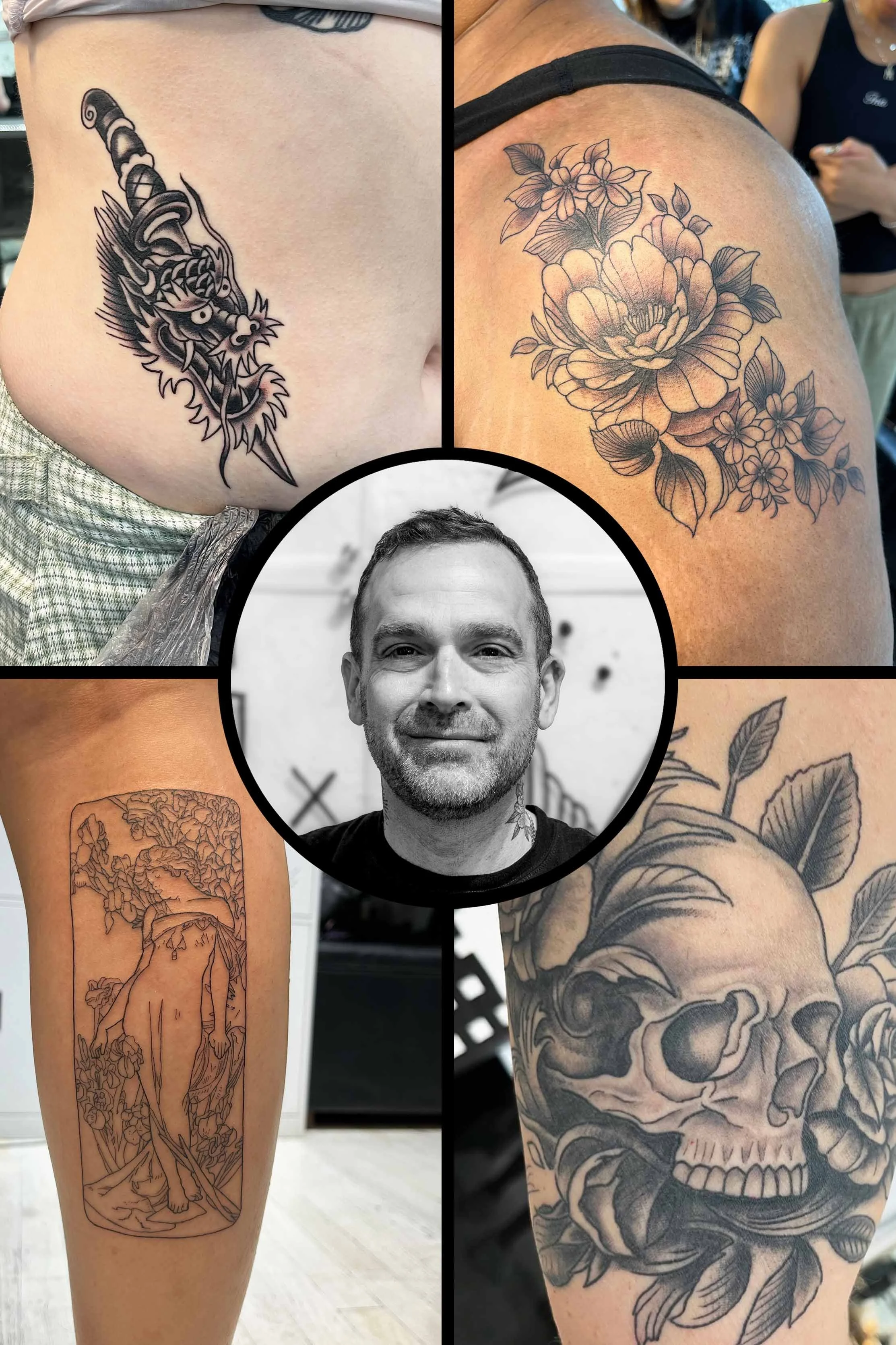 Adam Korothy specializes in Traditional, Neo-Traditional, Fine Line, Flash, Color, Cartoons, and Animal designs. With decades of experience, Adam’s portfolio is filled with strong and lasting tattoos that cross genre boundaries with an attention to each individual client’s custom needs. Check out their original flash book below or book your own custom piece today!